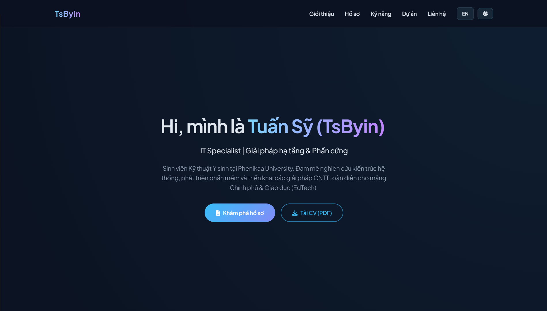 Sinh viên Kỹ thuật Y sinh tại Phenikaa University. Đam mê nghiên cứu kiến trúc hệ thống, phát triển phần mềm và triển khai các giải pháp CNTT toàn diện cho mảng Chính phủ & Giáo dục (EdTech). Biomedical Engineering student at Phenikaa University. Passionate about system architecture, software development, and implementing comprehensive IT solutions for Government & Education (EdTech) sectors.